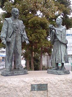 長浜駅前で銅像を発見しました。