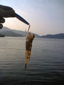 GW前半は、母と姉そして我が家族で温泉旅行!GW1週間前に宿を探すとなると大変難しくどこも満杯(あたりまえ)でもネットを駆使して何とか 福井県の某所公営宿舎へ行きました! これがなんと ★★★★★ 満足して帰宅! そして、GW後半突入 午前8時半ころ、 妻 「魚つりいかへんの?」 私 「うーん!どうしようかな」GW後半5、6日と仕事が入っていますので今日と明日しかフリーな時間はない暇つぶしにいこうかな ポケットにルアー数個を入れご近所へ 良い天気です。湾内からプレジャーボートが続けて沖に向かっています。 ベイトは少々 数投後沖合いで極小ナブラ発見ミノーでは届きませんので、10センチほどのジグに交換少し期待しながら底を取って巻き上げてくると ヒットォォォ 久しぶりの魚の引きです サゴシ程度と思っていましたが、スズキです、抜けません小型ギャフしか持って来てないのでランディング場所まで、引きを楽しみながら誘導しゲームセット 久しぶりのシーバス75センチでした。 約15分の釣行1匹で満足した私です。