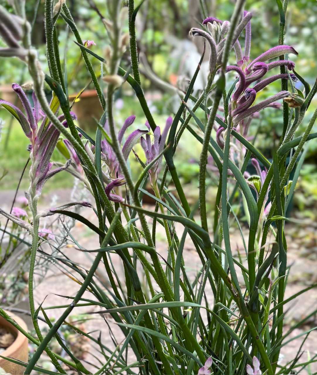 カンガルーポーをお迎えしましたカーニバルという種類です今シーズン、園芸店に行くたびに探してはいましたでも出会えずにいたんですが、なんとホームセンターの園芸市で売っていたのです!一番綺麗な時期を過ぎているので迷ったのですが「お姉さん、お安くしておくよ」との一言で即決しました(笑)*「奥さん」じゃなくて「お姉さん」と呼んでくれるのが関西やなあと思います本当はもっと綺麗撮影が下手くそなのでこの魅力の半分も伝わってないかもとても立派な株で、まだ蕾もたくさんありますカーニバルという品種はカンガルーポーの中でも比較的丈夫な品種らしく大株に仕立てていくのが楽しみですついでに買った苗もうすっかり夏仕様ですついでに我が家で咲いているオージーです初めて咲いたグレビレア・キングスセレブレーションですこのタイプのグレビレアのことを「ハリネズミ」と呼んでいる人がいるようです確かに可愛いハリネズミだわ蕾はこんな感じ真っ白な蕾の先から少しずつ赤い花弁が出てくる感じですまだこのサイズのひょろひょろモヤシっこですグレビレア・ピーチズアンドクリームこっちの花は本当に豪華人気なのも納得ですピメレア・フォーシーズンズピンクでとっても可愛いんですがこれも可愛さを写真で表現できてないですアップにするとこんな感じ去年の10月20日購入と記録にあります2株あり、冬の間に何度か咲いた後、1株が枯れたと思って強剪定しましたでもそこから新しく新芽が出てきたようです春になってお迎えしたオージーの苗がいくつかありますがそちらはもう少し成長したらまたアップします今日も遊びに来てくださってありがとうございましたにほんブログ村