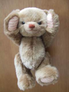 かれこれ、1年半くらい放置していた作りかけのテディベア・・・いい加減に作らないと浮かばれないじゃん!って思って重い腰をあげてみました・・・頭は出来ていたので、胴体と手足をチクチクチク・・・ハードボードは前回で挫折したので、取り合えずプラスチックジョイントで手足装着~出来上がったベアちゃん・・・微妙にピンボケなのはお許しを・・・バンザイベアちゃんの出来上がり♪っていうか、何故にバンザイなのか・・・?って言いますと・・・腕の付け位置間違えた・・・何だか肩がぐーっとあがって息が詰まりそうなベアちゃんになってしまいました・・・悩んだ挙句、肩の辺りの毛を短くして、大きめリボンでごまかしてみました・・・♪・・・ちょ・・・ちょっとは見られるようになったかなぁ?ハニカミ王子ならぬ、ハニカミベアの出来上がり♪いや、「ハニカミ」っていうより「にやり笑い」かな?