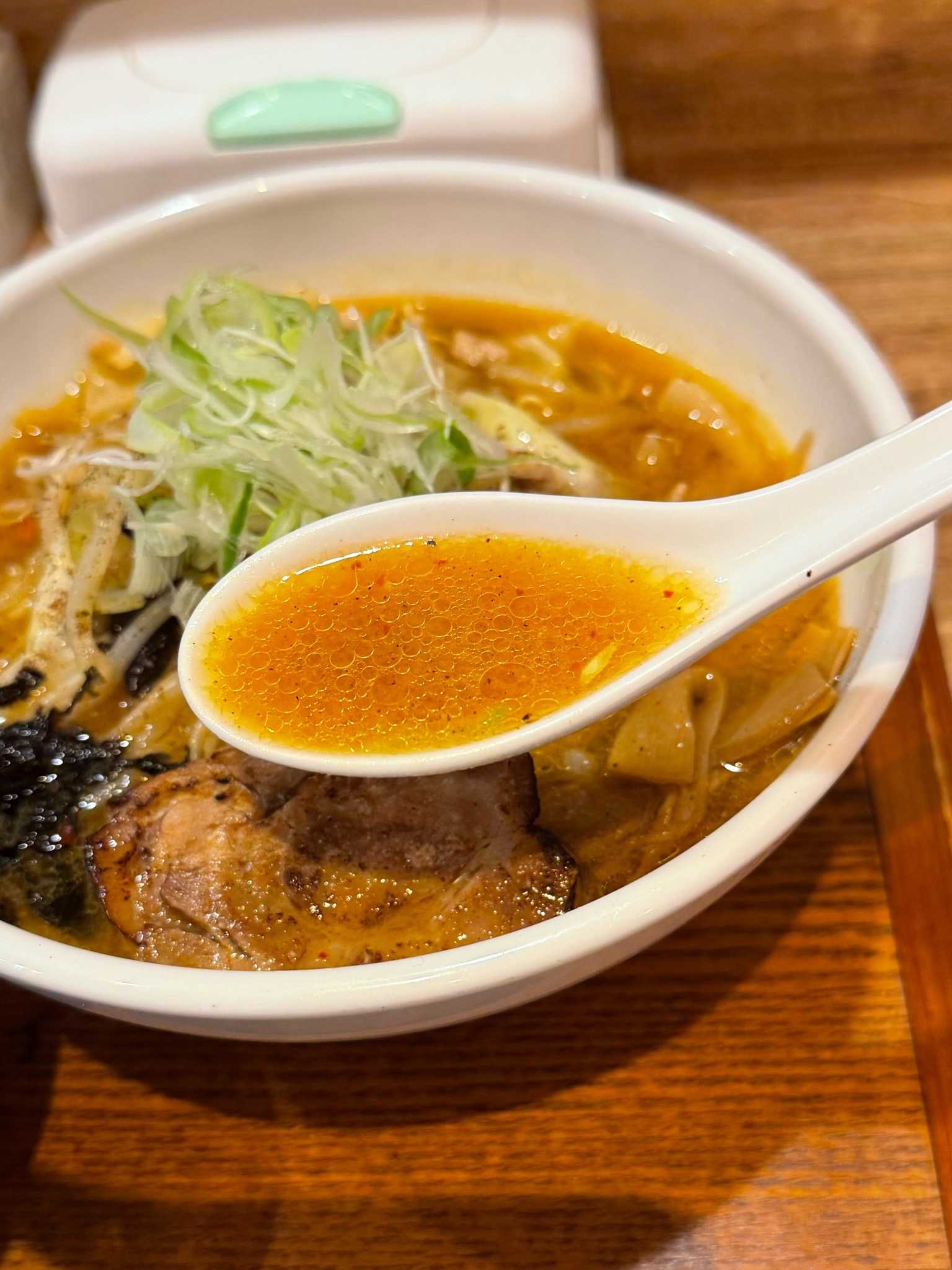 スパイシーな山椒オイルの風味とラードの香ばしさがバッチリきいた熱々味噌スープ