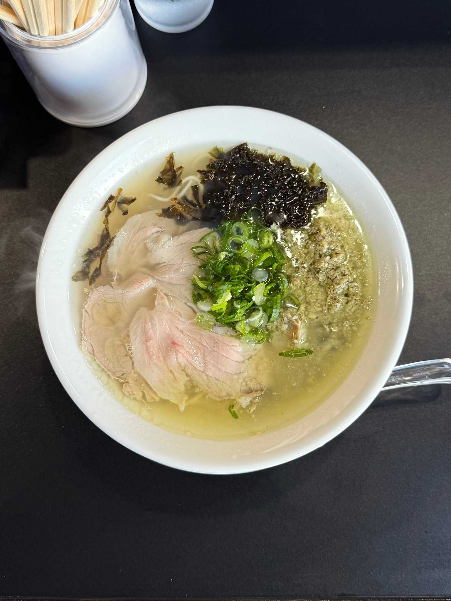 God of Roses 麺|函館市※訪問回数 初牡蠣塩ラーメン[1100円]牡蠣の風味がまろやかに広がるあっさり乳白色の塩スープツルパツ系の中細ストレート麺トッピングはネギ、岩海苔ひこま豚の薄切りチャーシューが上質でナイス牡蠣ペースをよくかき混ぜるとウマみアップ卓上の白こしょう、一味唐辛子、ぶどう山椒で好みに味変自家製辛子高菜と相性バッチリで旨辛ブースト【UMSR】🍜God of Roses 麺📍函館市亀田町20-18🈺11:30〜21:00 定休日[不定休]🅿️5台