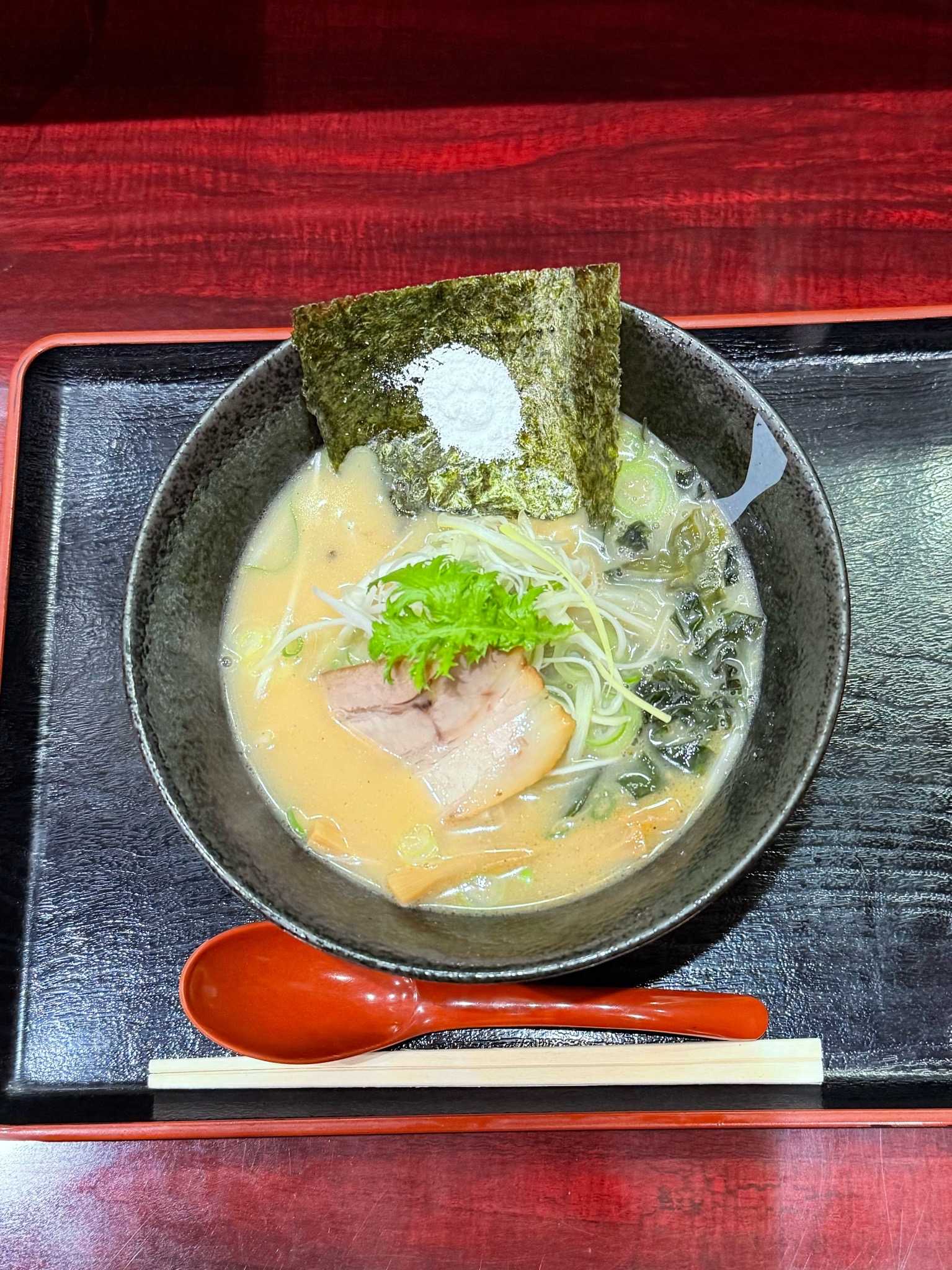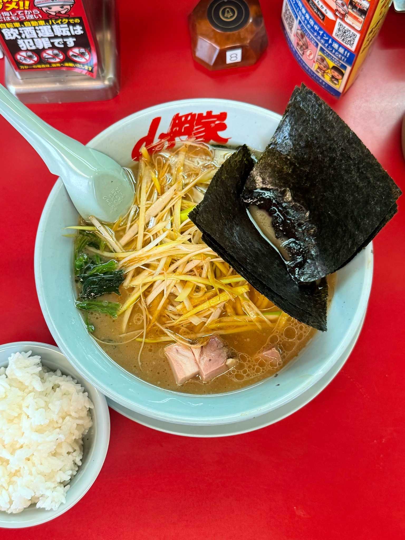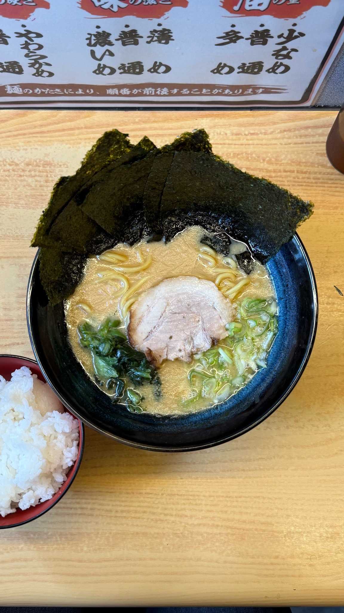 横濱家系ラーメン すずの家|札幌市西区※訪問回数 初醤油ラーメン(並)[850円]海苔[150円]※ライス無料まったりクリーミーな豚骨醤油スープムッチリ感のあるストレートの太麺・カタ麺オーダートッピングはネギ、ほうれん草、チャーシュー、海苔6枚終日無料のライスを海苔巻きライスにして完食🍜横濱家系ラーメン すずの家📍札幌市西区琴似2条1-3-5 ※JR琴似駅から徒歩約3分🈺11:00〜23:00 定休日[不定休]🅿️無