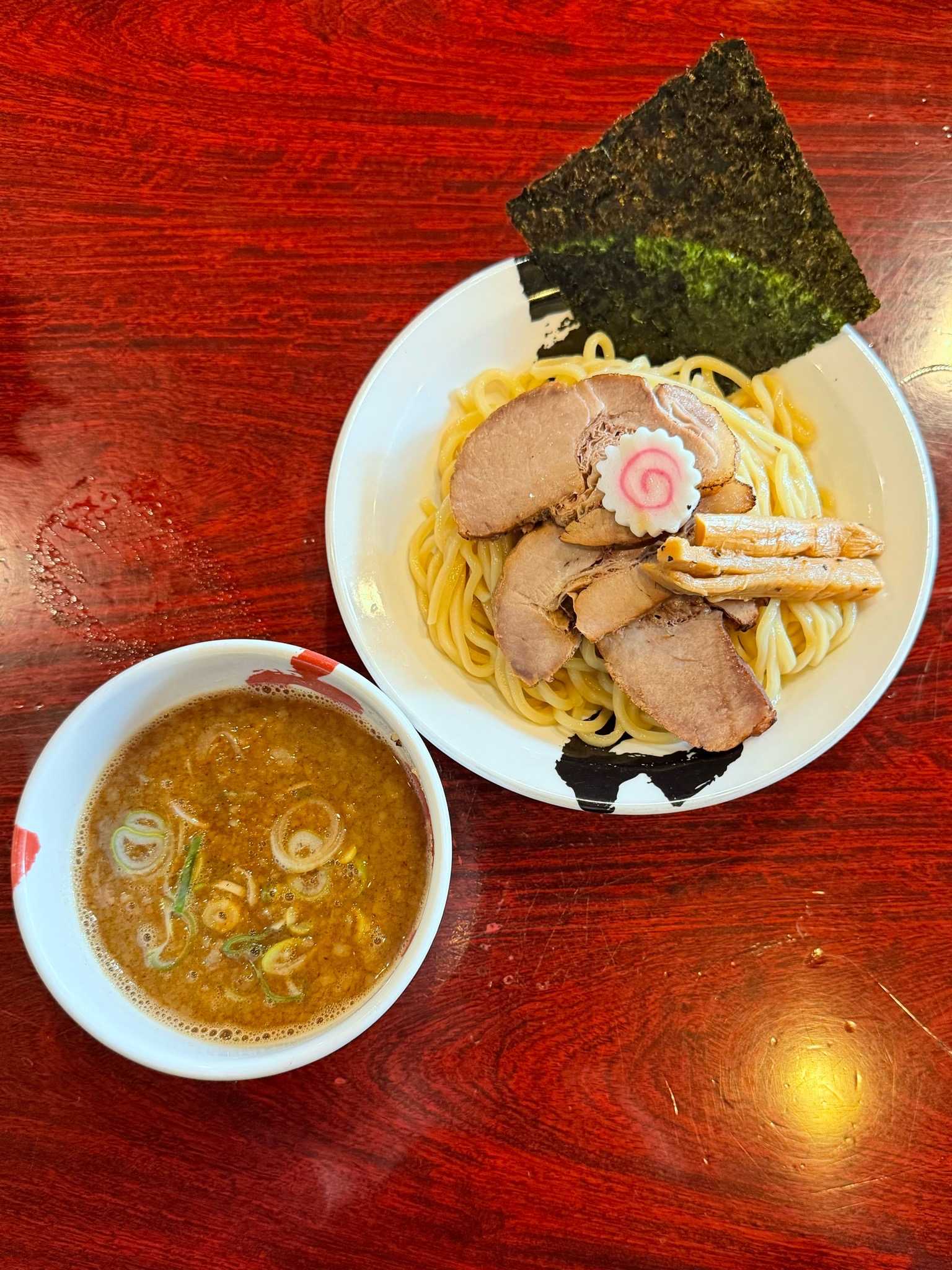あら焚き豚骨 あらとん本店|札幌市中央区※訪問回数 17回特製濃厚つけ麺 麺少なめ[1360円]背脂マイルドでお魚フレーバーがダイレクトにくる濃厚魚介豚骨つけ汁ワシっと系でコシのあるゆるいウェーブの角太麺・冷やもりトッピングはナルト、極太の柔らかメンマ、炙りの入った厚めのチャーシューウマみたっぷりのつけ汁をスープ割りして完汁濃厚出汁がクセになる鮮魚系つけ麺【UMSR】🍜あら焚き豚骨 あらとん本店📍札幌市中央区北10条西21-15-1 札幌場外市場 ※バス停 場外市場近く🈺10:30〜16:00 定休日[不定休]🅿️場外市場の駐車場