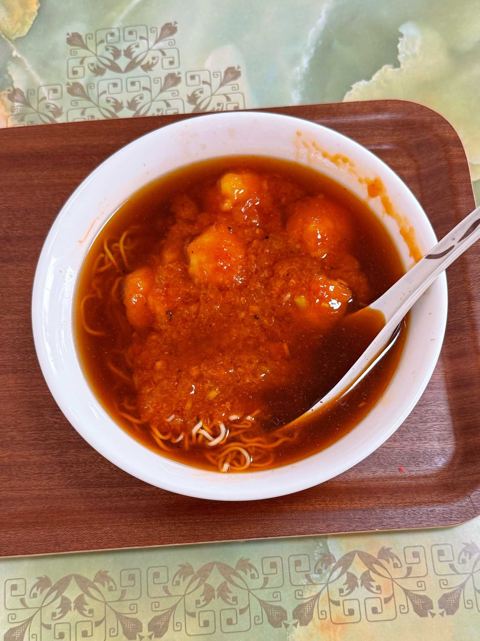 ひぐま食堂|名寄市※訪問回数 初エビチリラーメン[1100円]油膜びっしり熱々でホットな辛さの辛醤油スープに大ぶりな海老がゴロゴロ入ったエビチリがたっぷりツルシコの細いちぢれ麺レンゲがビッグサイズ(笑)ラーメンとエビチリが見事に融合したインパクトのある一杯【UMSR】🍜ひぐま食堂📍名寄市西四条南11🈺11:00〜14:00/16:00〜19:00 定休日[水]🅿️店前5台程度