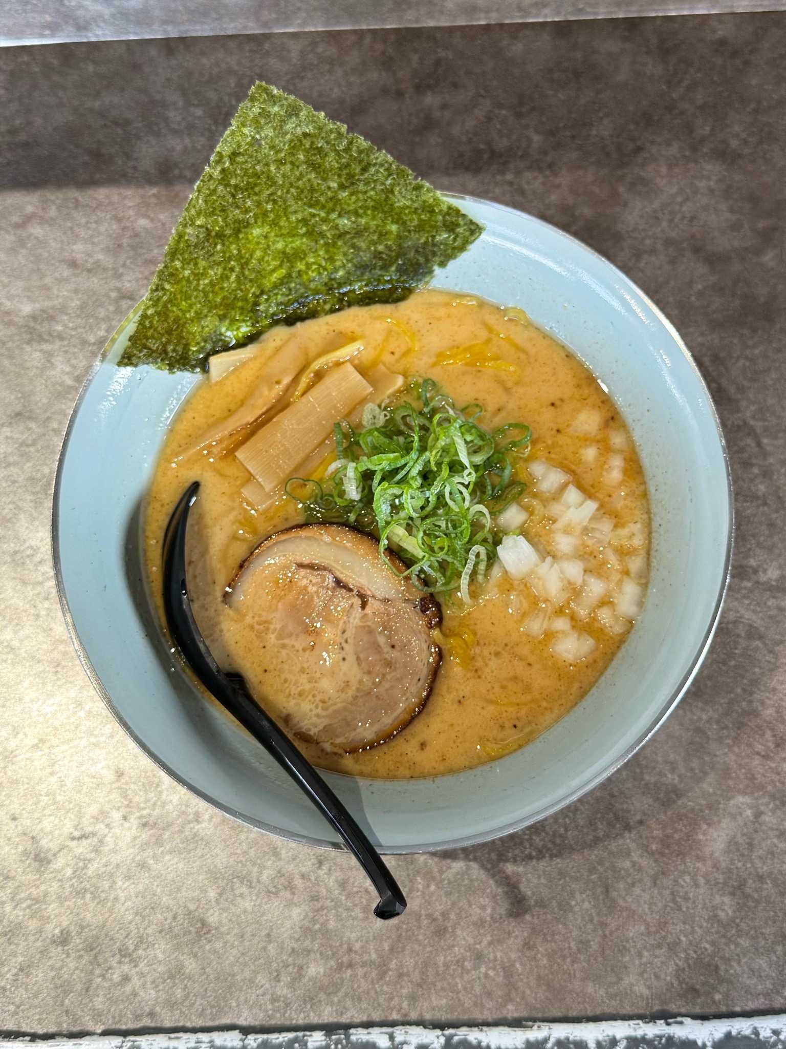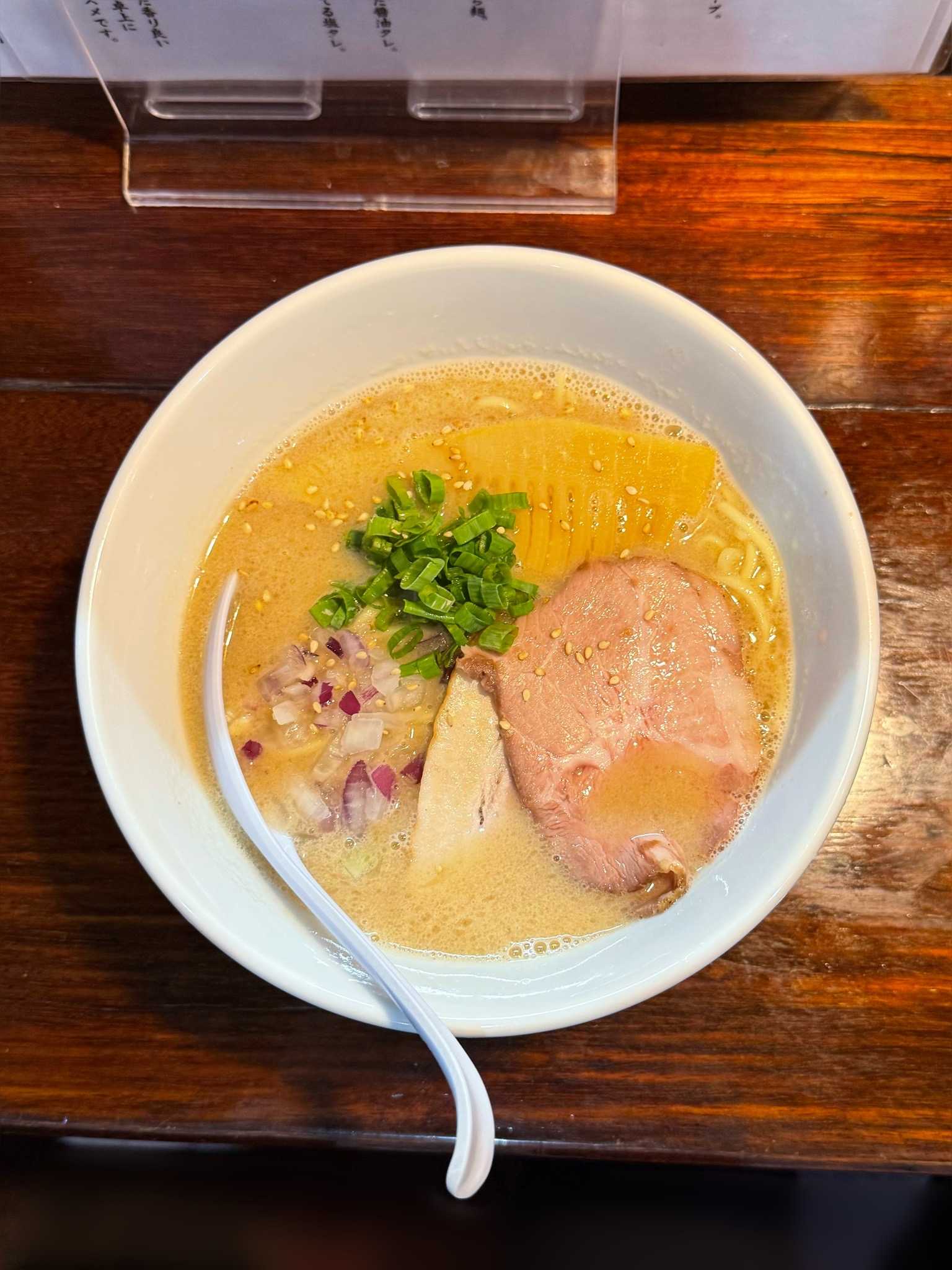 らーめん 源屋|恵庭市※訪問回数 初濃厚魚介塩ラーメン[950円]マイルドクリーミーで魚粉の風味がバシッときいた白湯系の塩スーププリシコの中太ちぢれ麺トッピングはネギ、海苔、メンマ、炙りの入ったチャーシュータマネギの辛みと食感がナイスアクセント【UMSR】🍜らーめん 源屋📍恵庭市有明町1-1-1🈺11:00〜20:45L.o [火]11:00〜14:45 定休日[水]🅿️8台