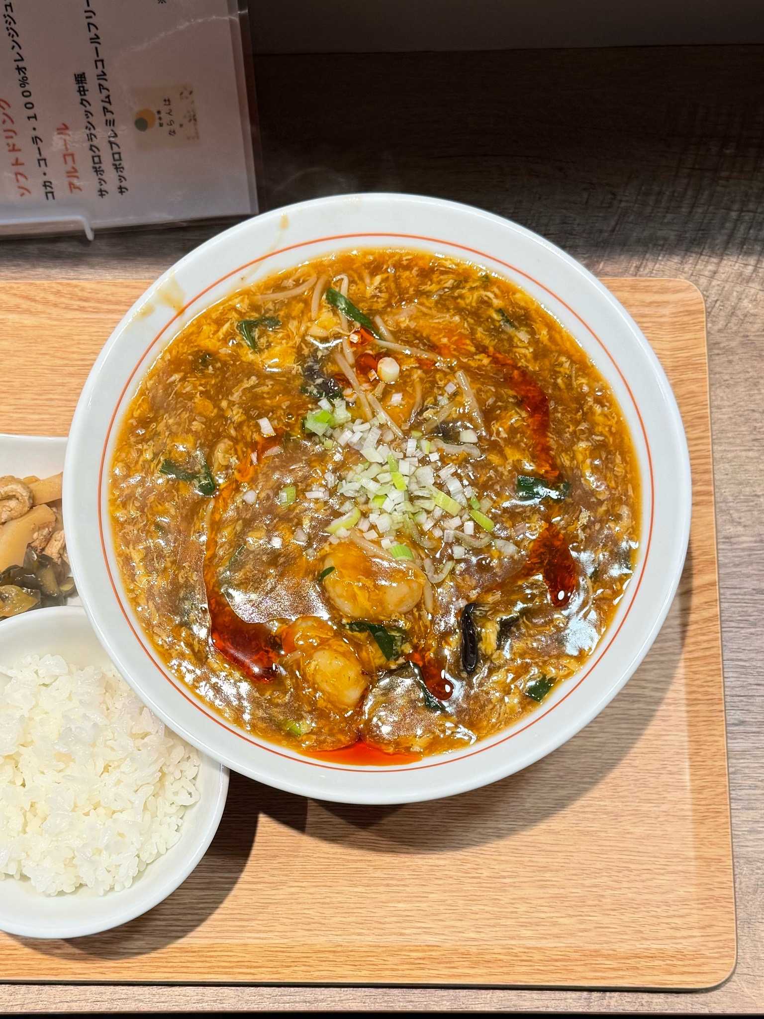 町中華 ならんは|札幌市中央区※訪問回数 初ならんはのあんかけ辛麺[1150円]トロミしっかり熱々でラー油の辛みと山椒が風味がきいた醤油ベースの卵とじあんかけムチっとした中細ストレート麺もやし、ニラ、人参、タケノコ、キクラゲ、イカ、エビ、豚肉が入って具沢山ライス付きでボリューム満点この季節にピッタリなあんかけ辛麺🍜町中華 ならんは📍札幌市中央区北1条西7-1-3 ※バス停 北1条西7丁目から徒歩約2分🈺11:00〜15:00/17:00〜21:00 定休日[日祝]🅿️無