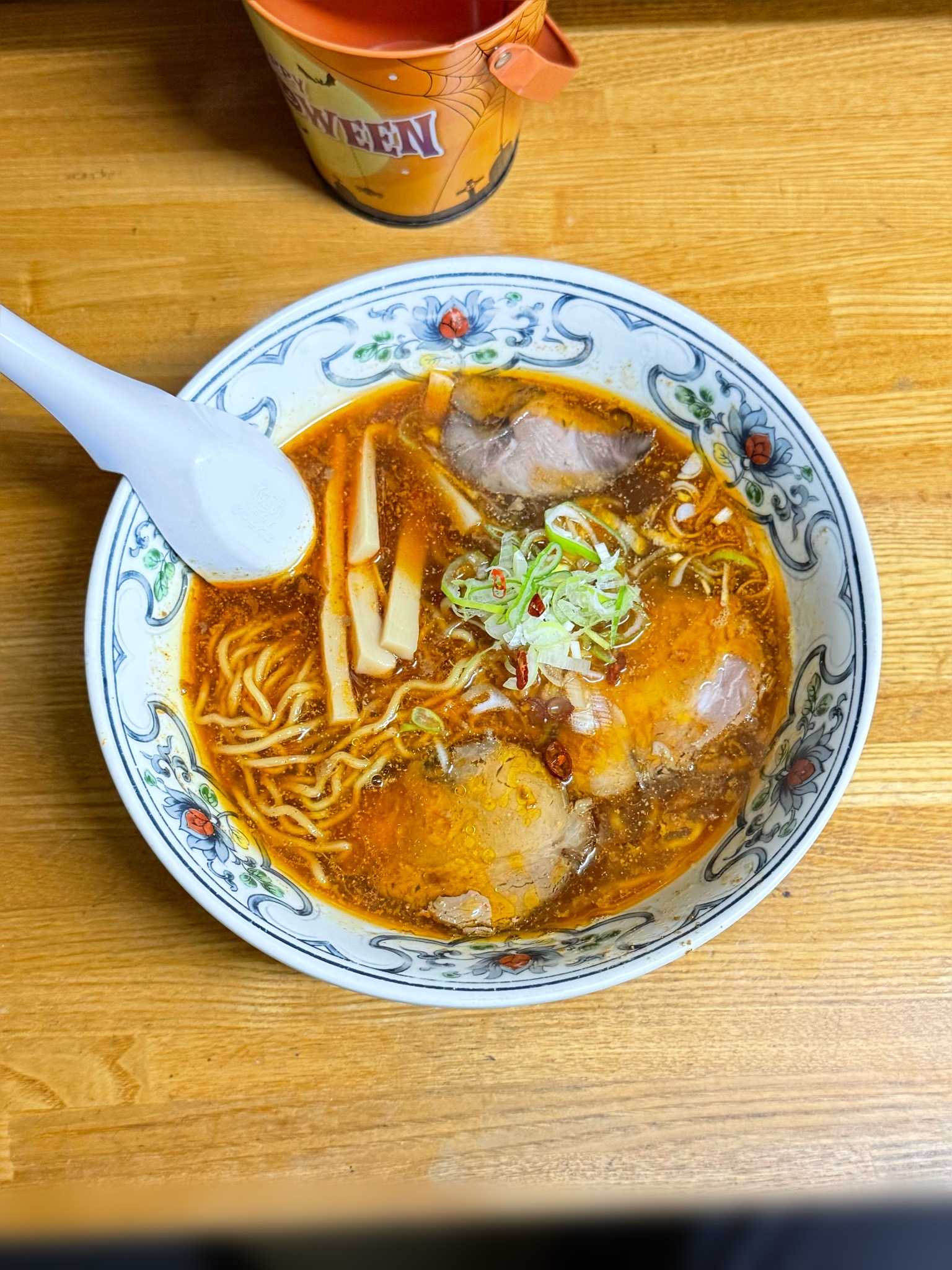 らーめん黄拉拉|旭川市※訪問回数 3回ピリ辛正油ら〜めん[700円]※辛さ中レベルホットな辛さで昆布や魚介の独特なウマみが広がる辛醤油スーププリムチの中細ちぢれ麺トッピングはネギ、細切りメンマ、ホロホロのしみしみチャーシューシンプルで刺激のある美味しさ🍜らーめん 黄拉拉📍旭川市一条通4-27-17🈺11:00〜20:00 定休日[不定休]🅿️5台