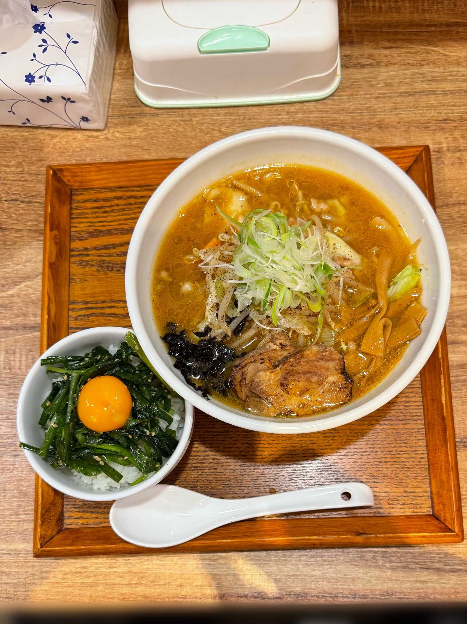 味噌専門 ラーメン083Red|札幌市中央区※訪問回数 初083山椒味噌Whiteラーメン壷漬けニラ玉丼※ランチセット[1130円]スパイシーな山椒オイルの風味とラードの香ばしさがバッチリきいた熱々味噌スーププリシコでゆるいウェーブの中太麺具材はネギ、海苔、挽肉、もやし、たまねぎ、にんじん、キャベツ、キクラゲ、メンマ、炙りの入った厚みのあるチャーシュー2枚スッキリ感のあるコク深い味噌ラーメン濃厚卵黄を絡めて食べるニラ玉丼もナイス🍜味噌専門 ラーメン083📍札幌市中央区南6条西9-1024-36 ※市電 東本願寺前駅から徒歩約6分🈺11:00〜1:30L.o 定休日[無休]🅿️無