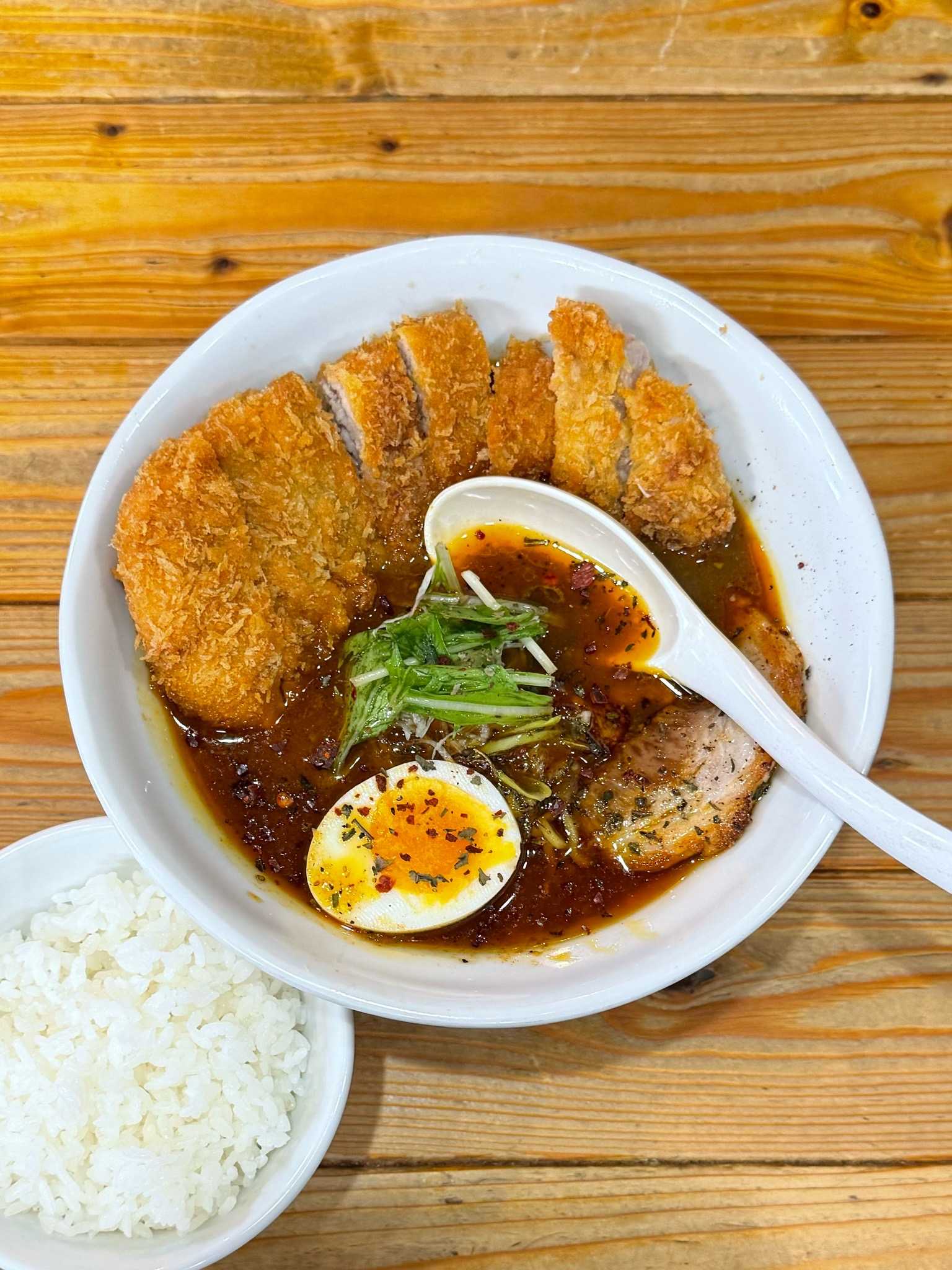 らーめん 優月|札幌市東区※訪問回数 5回eth-curry RA-MEN Short ver. [900円]厚切りカツ[540円]マイルドな辛さでまろやかスパイシーなスープカレーテイストのスーププリムチの中太ちぢれ麺ハーブ系の香辛料がかかってトッピングは水菜、ネギ、味のしみたメンマ、ハーフのゆで卵、炙りの入った豚バラチャーシューさっくりころもの柔らか厚切りチャーシューがダイナマイトインパクト小ライス付きで〆はスープカレーのように味わってフィニッシュ【UMSR】🍜らーめん 優月📍札幌市東区北12条東13丁目2-15 ※地下鉄東豊線 環状通東駅から徒歩約8分🈺11:00〜14:45/17:00〜19:45L.o [土日祝]11:00〜14:45/16:30〜19:45L.o 定休日[火水]🅿️店横5台、隣の敷地5台