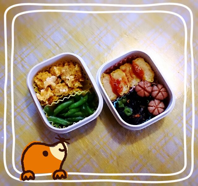 今日は曇り時々晴れなかんじ 娘は土曜日の文化祭の代休なので お弁当は二男だけ。 menu ・スクランブルエッグ ・インゲンおひたし ・チキンナゲット ・ひじき煮 ・ウインナー