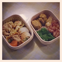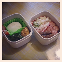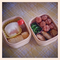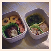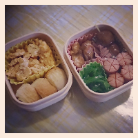 昨日から時々降っている雪が今朝はうっすら積もっています。 今日はお弁当二つです。 menu ・ネギ入りスクランブルエッグ ・大根の煮物 ・梅香るチキンカツ ・ウインナー ・ミートボール ・醤油バター味焼き野菜