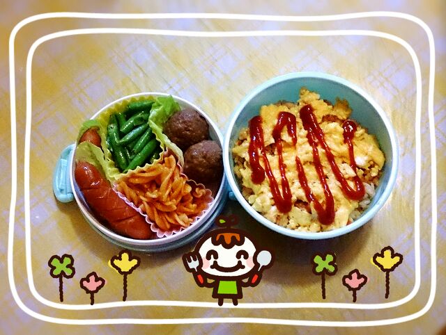昨日次男は発熱で欠席しましたが 今日もまだ微妙な体温なので念の為欠席。 menu ・ウインナー ・ミートボール ・インゲンの塩胡椒炒め ・マカロニのケチャップ炒め ・サラダ菜 ・オムライス 今回のオムライスの卵はなんとかいい感じにできた(^-^)