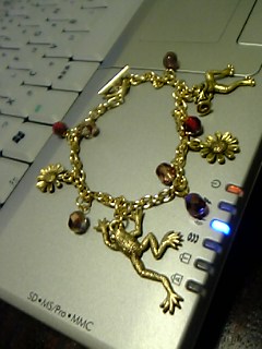 芸術の秋です(笑)かえるのブレスレット をつくりました。ちょっとPCの上なので、色気がないですが。やるべき仕事は、たくさんあるのに。やりたい勉強も たくさんあるのに。やっぱりビーズをみると 頭の中にいっぱいデザインが浮かんじゃう。もう ビーズ仕事にしよっかな~(笑)人気ブログランキング ↑ 一緒に「幸せな食生活」をつくりましょ。ランキングよろしくお願いします。