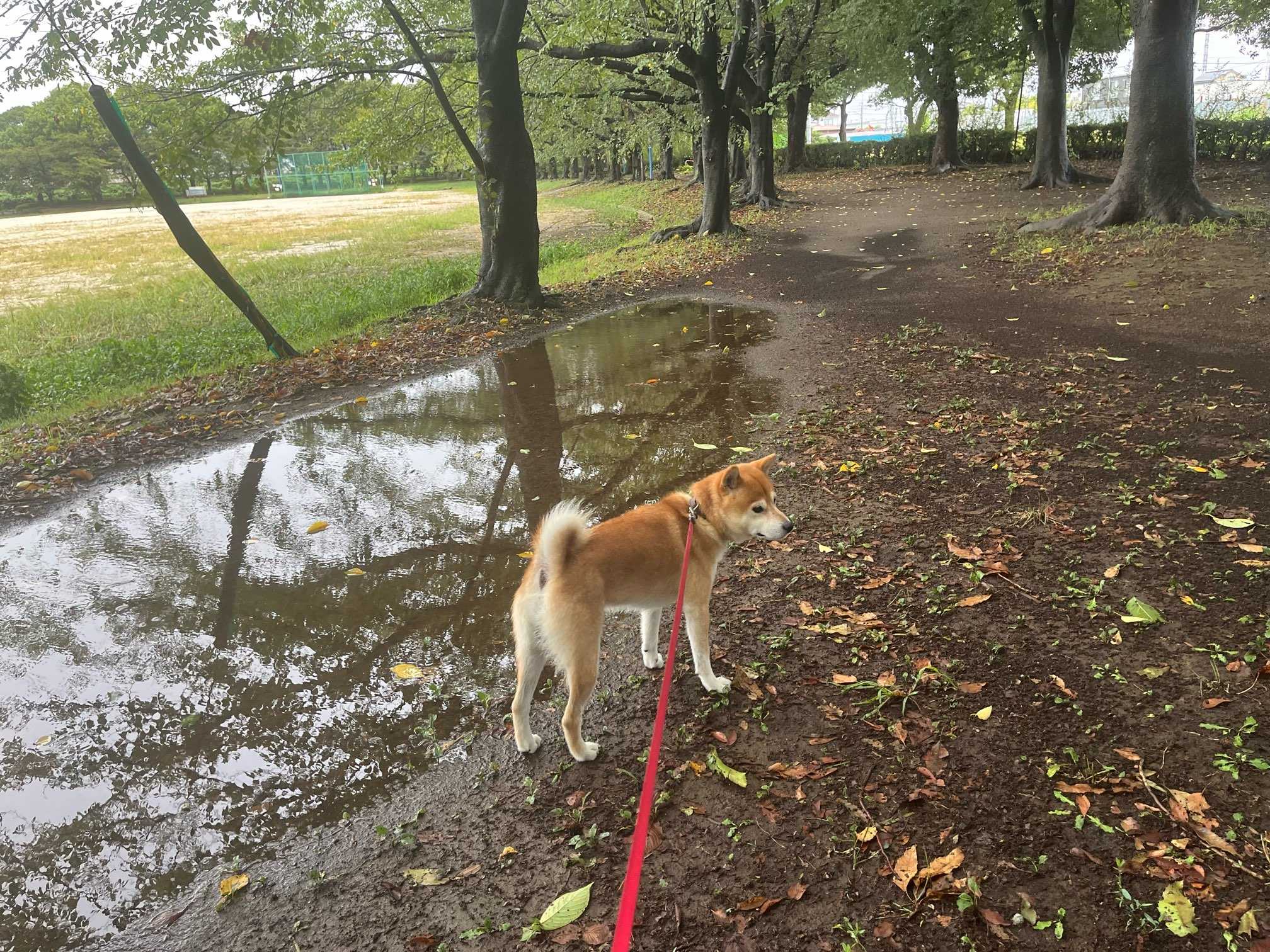 こんにちは♪柴犬カイです。散歩道も水溜り。随分と降りました。空のバケツが一杯になりましたからね。水不足で弱っていた植物にとっては、恵みの雨でした。関東の各ダムの水量も大分増えたようです。ポチッと押して下され。ありがとうございます♪😊。