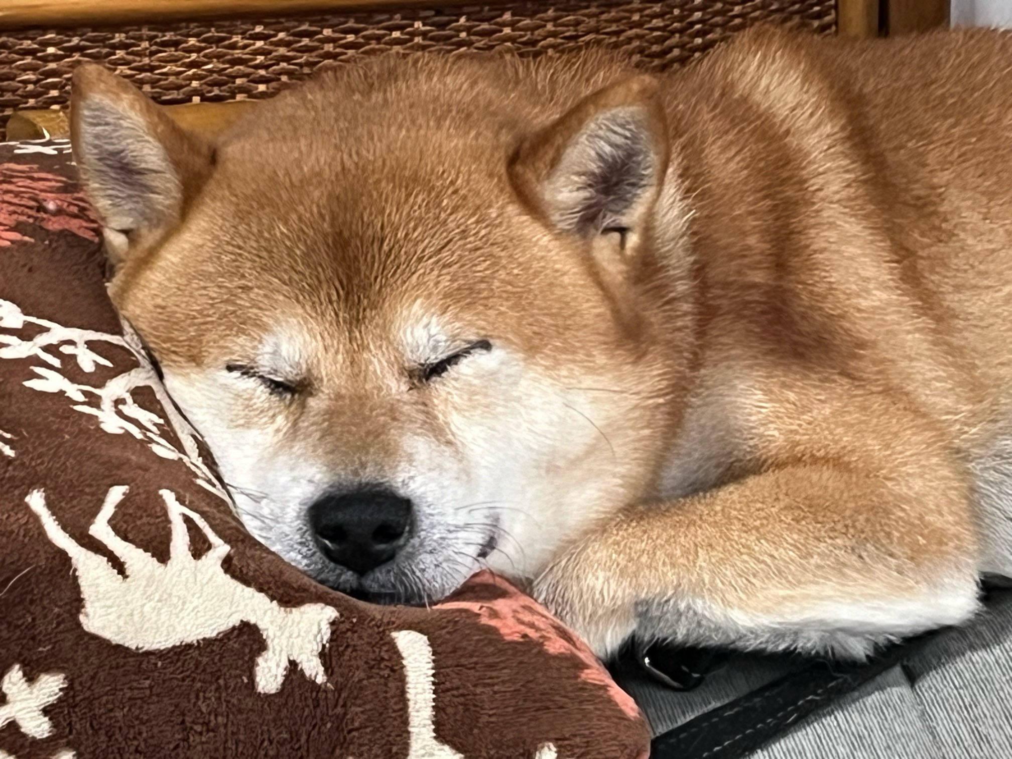 気持ち良くなって朝散歩後のお眠りに入りました。♪