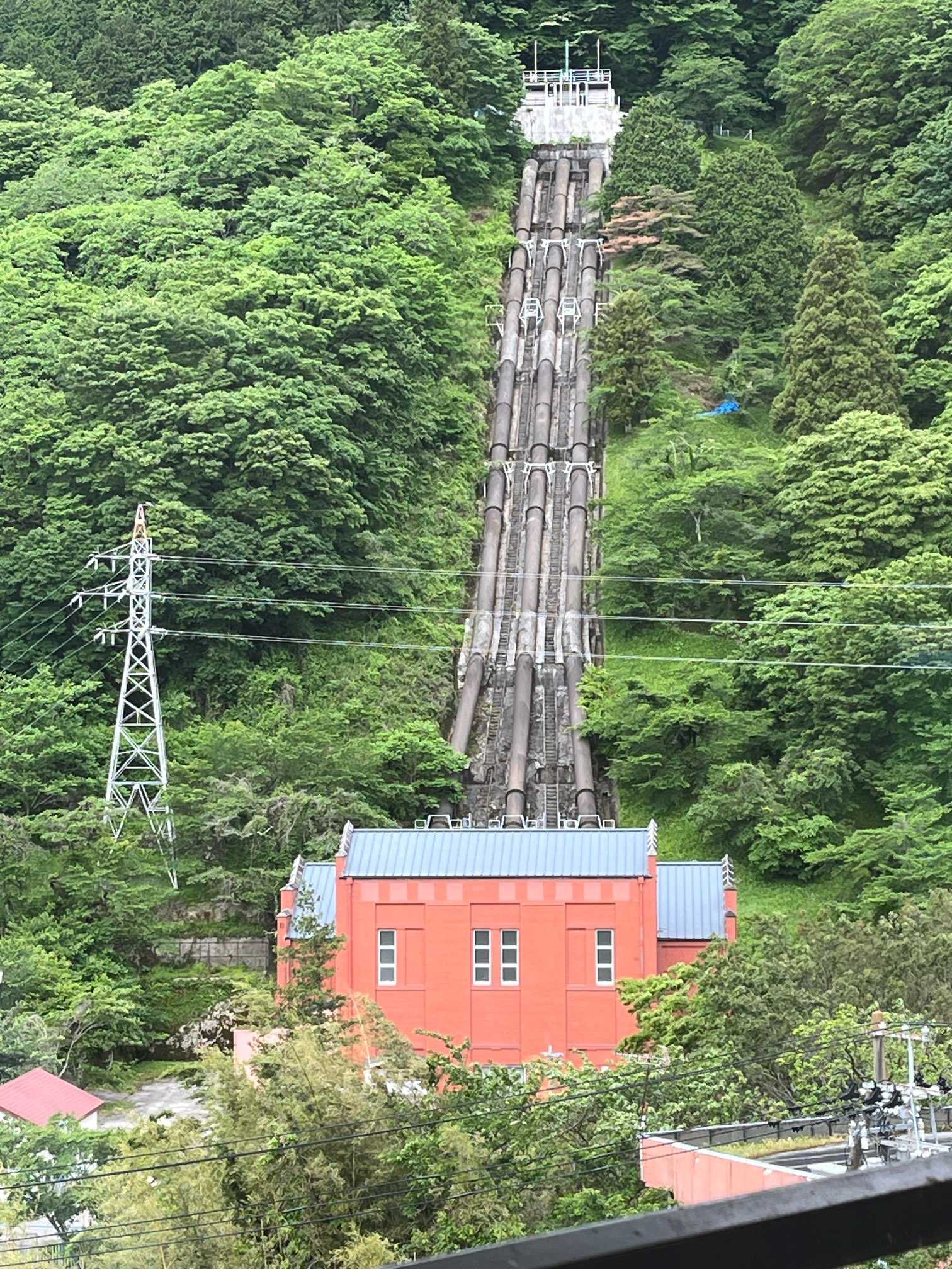 これは、山形から埼玉に帰る途中に福島の磐梯熱海温泉♨️に一泊しました。萩姫の湯栄楽館さんです。宿泊した部屋からの景色です。100年以上も前から現役の水力発電所で丸守発電所です。この水源は、猪苗代湖の水です。