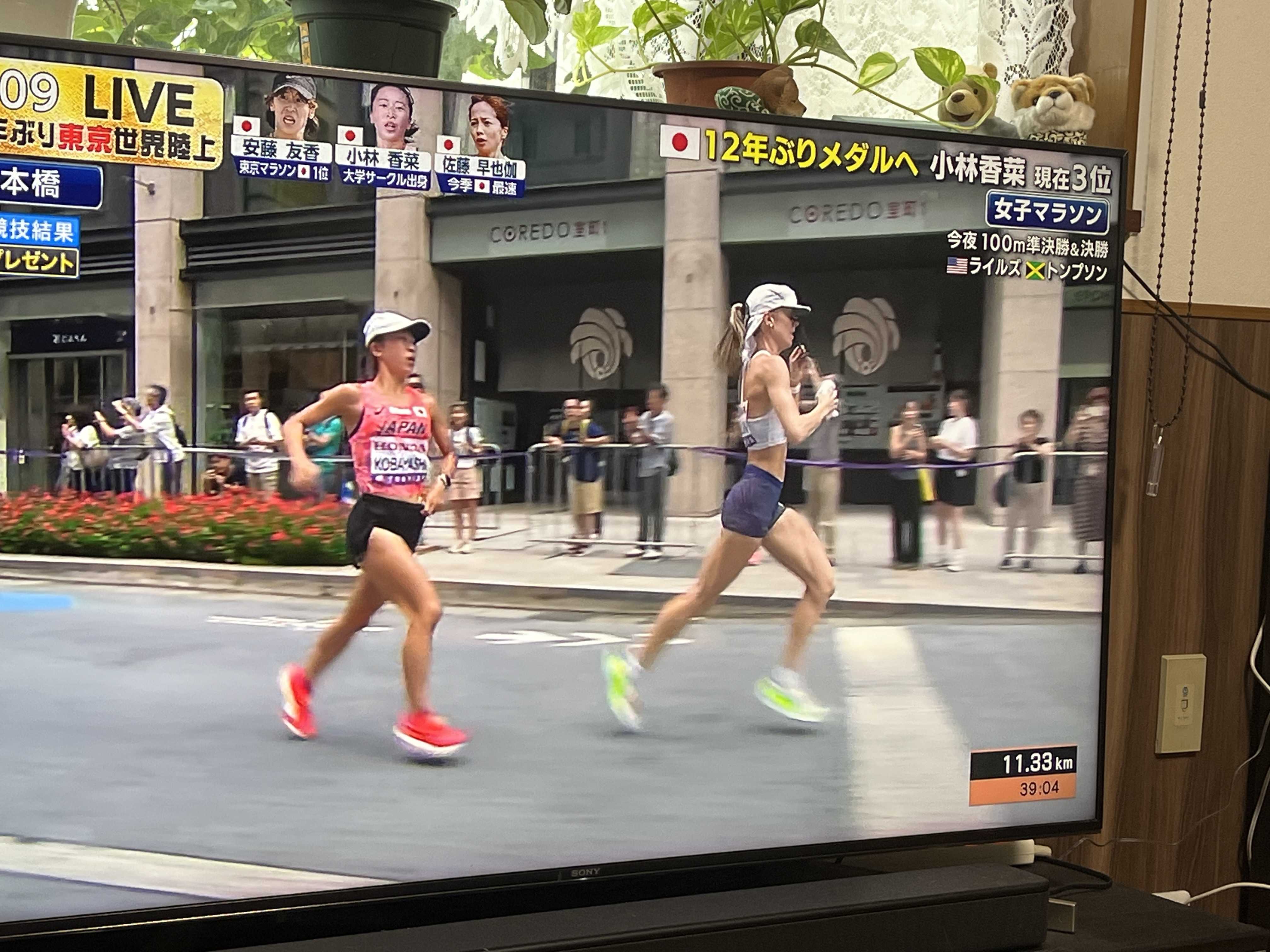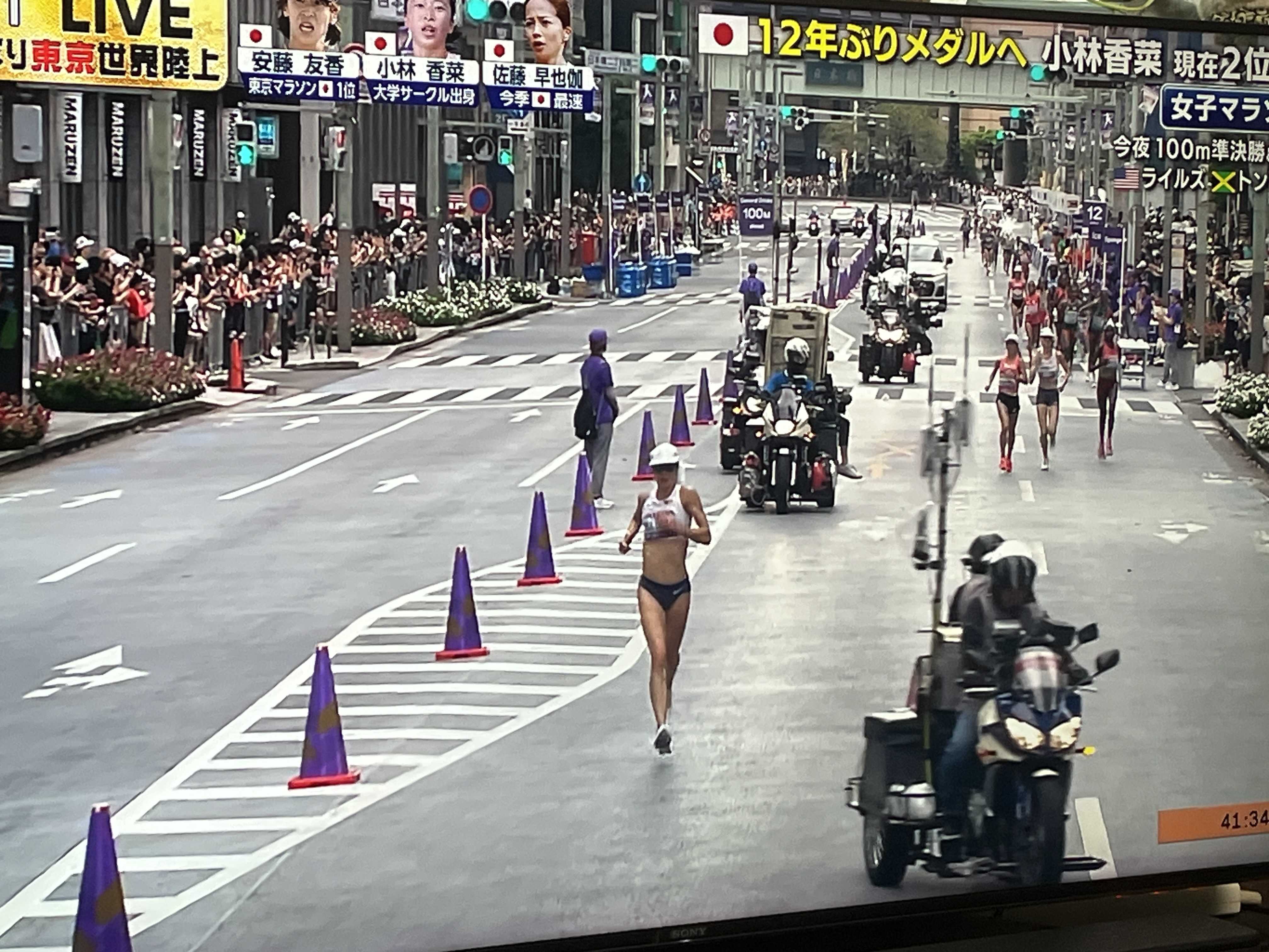 今は、女子の世界陸上マラソンをテレビで見ています。沿道には、応援📣の方々が一杯いますね。