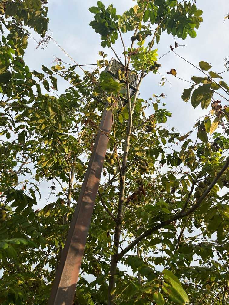 この木は何の木でしょうか。ところどころに実がなっているので分かるかな。実は、この木は、胡桃の木ですよ。身の中に、立派な硬い胡桃が入ってますよ。これも、秋の恵みの一つですね。