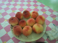 ヌテラママに誘われて、産まれて初めての桃狩りにgo! 7時出発9時現地集合という、朝寝坊の私には過酷な条件でしたが(笑) 木から二個好きな桃をもいでお持ち帰り♪(^.^) その後は風通しの良い葡萄棚の下のテーブル席でゆっくり食べ放題! そして何よりワンコOKという素敵な農園\(^_^)/ 1人1050円っていうのも良いですね!(^○^) 企画者はダニエルandキティさんで、他にも大勢集まりました! 人間10人犬11匹U^0^U みんな5~6個は食べてたナァ(^-^; 私は3個でギブアップ! マッタリ休んで少し早目にランチ 車で10分位のローズガーデンへ! クリームとデミグラスソースの二色オムライス(^q^) 温かいハーブティと桃のゼリーがついて1200円!美味しかった~(*^^*) みんなと別れた後、談合坂のドッグランに行ってみたら誰もいなかったので、ヌテラ、ケーテ、&チェルビアットで思い切りランo(^o^)o 嬉しそうなワンコ達がとっても可愛かった~!(*^^*) 家ではきゃんきゃんとうるさいチェルビアット 誰とも争わずに挨拶を交わし、食事中もいい子で待って、車の中でも静かに伏せて初めての長距離ドライブを乗りきった彼女を、見直した一日でもありました(*^^*) 次回は、参加していたU^q^Uをご紹介(^_^)/