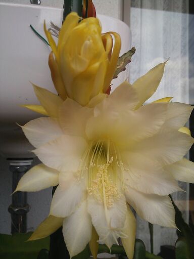 数年前から育てている仙人掌に、 見事な花が咲きました(*´-`) 枯れかけたりしながらも頑張り続けて、咲かせた大輪の花です! 葉は平たくて、棘の付いた笹蒲鉾みたいな平凡な仙人掌だけど、花は華やかなパステルカラーなのねー (*≧∀≦*) 暑くなってうんざりしている中で、ちょっと爽やかにしてくれた出来事です( ´∀`)