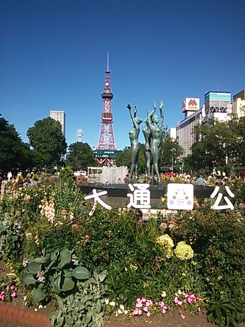 ご存知札幌テレビ塔 この風景はあまり変わらないですねー(^-^)/ この塔の下で、雪まつりのイベントとしてバンド演奏した、若かりし頃を思い出します! 普段は英語の曲ばかりやっているのに、舞台に上がったら前列が外国の観光客ばかり! ボーカルの子が嫌がって、慌てて日本語の曲だけでステージを組み立てたっけ♪(^-^) 雪が降ってきて弦で感電し、感覚ないまま演奏した事もあったなぁ(笑) 実家の近くを歩いていると、不思議な家がありました。 人形や模型で埋め尽くされています! 義父の話によると、お巡りさんが子供達の交通安全を願って人形を作って使っていたものを、リタイア後に家の周りに飾って交通安全をアピールしているのだとか。 なるほどと思いましたが、人形恐怖症の私には怖い場所でした(;^_^A 大通り公園で開催されていたらしい花壇のコンテストで賞を取ったらしい花壇!可愛いので激写! 札幌駅近くにある雪印パーラー! ショーウインドウのディスプレイがあまりにもスゴかったので激写! そしたら突然知らないおじ様に声をかけられました! このアイスは雪印が社運をかけて製作した、かなり美味しいアイスだから、是非とも食べて行くと良い! でもその方関西弁で(笑)、同じ旅行者らしいのです。私達にどうしても美味しさを伝えたかったのでしょうか(*^^*)