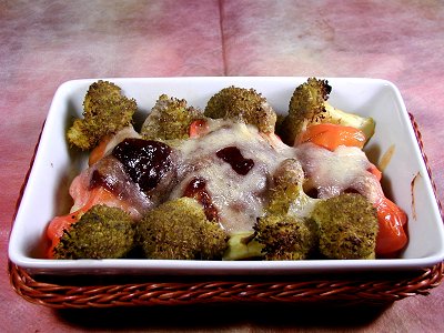 ブロッコリーなど と一緒に チーズ を乗せ、