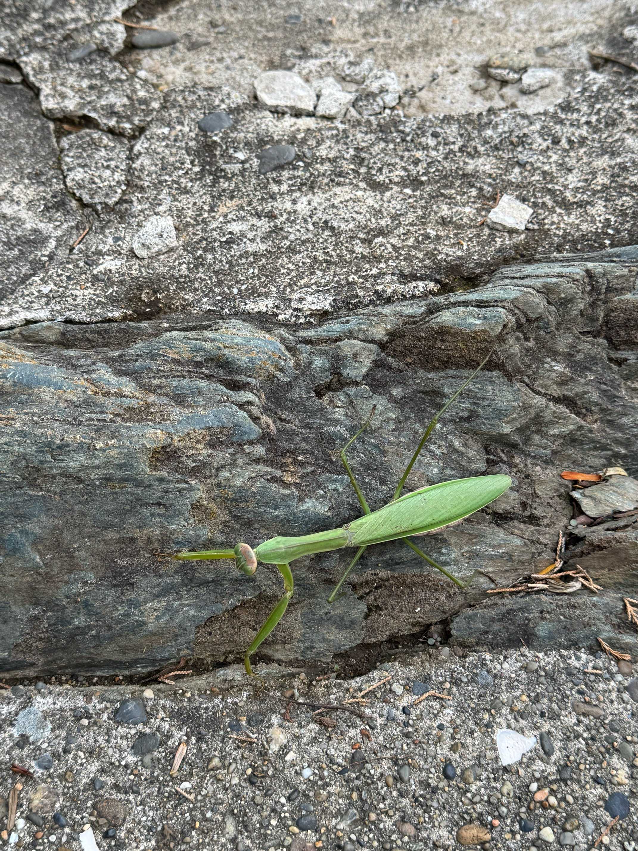 先日の話。実家に息子と行ったら、田舎育ちの立派なカマキリちゃんが…。緩やかな石垣の階段に一匹玄関の引き戸の脇にも一匹田舎育ちは大きくなりますねぇ。