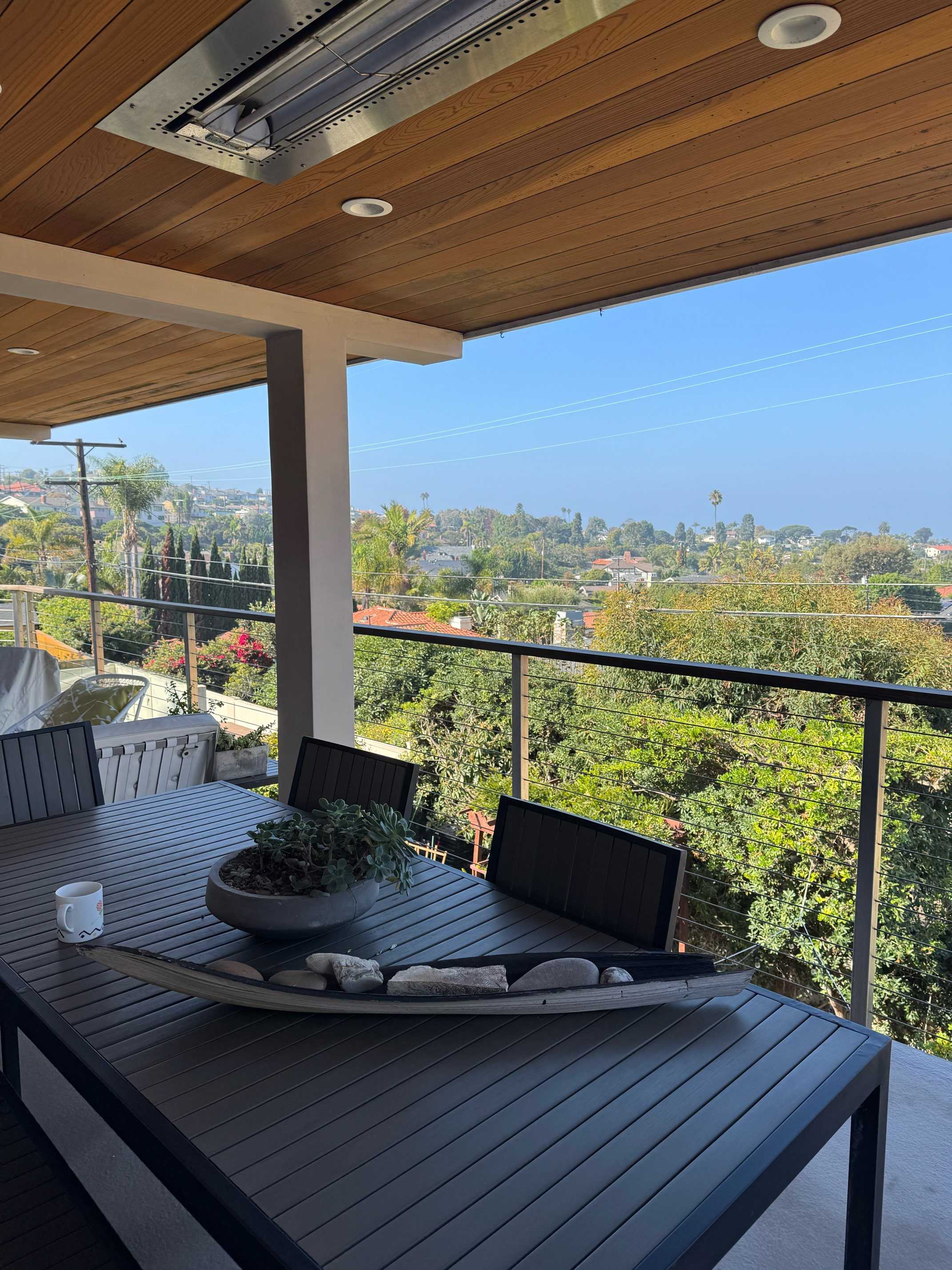 前日から泊まっていた友人の家はとにかく景色がいい。毎年火事が起こるマリブから、海辺まで見渡せる。朝は海側は霧でよく見えないけれど。広ーいテラス💕私が住んでいた家は同じ市だけど、向きが違って、ダウンタウンとその奥にハリウッドの文字のあるビバリーヒルズが見渡せたけれど、こんな立派な家ではない💦朝から旦那さんのJちゃんは海のゴミ拾いと、不要な植物を抜くボランティアに行っていた。私たちも海に向かって歩くこと20分。根の浅い植物を取って、根が深くて土手が崩れないような植物を植え直すんだって。この日も高校生のボランティアが参加。(授業の単位になります)手伝うわけでもなく、Jちゃんに「来たよ〜。」と合図だけして、海沿いのおしゃれなお店のオープンテラスでメキシカンの朝ごはん。 ワンコも連れていたしね。朝晩は日本の秋と同じくらいの気温なので、ガスのストーブが外なのにテーブルの近くに設置されている。朝から、マルガリータ🍸また、彼女の家まで今度はマジ登り坂を歩く。とにかくこの家に行くと健康的に歩く🚶♀️気持ちいいんだ、これが。