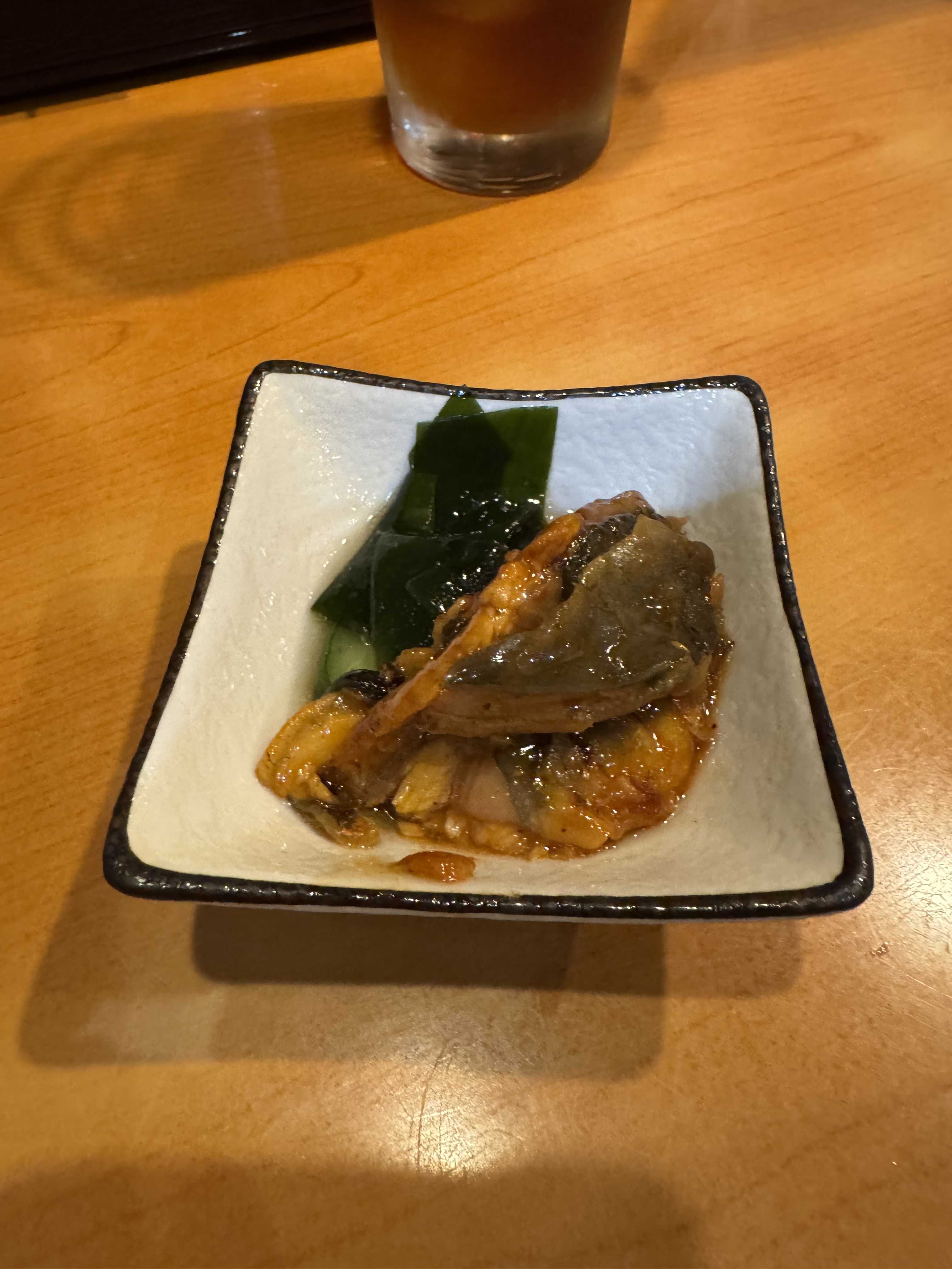 私の行きつけ居酒屋へ😆お疲れさまセット(本来なら生中🍺とお酒のあて2品)、息子はウーロン茶で💦まずは先付って言うんだっけ?うなぎの煮物ときゅうりとワカメの酢の物の合体。甘くて美味しいのにサッパリしてる。息子、絶賛。お疲れさまセットのぶりのお刺身。とろっとろ💕イワシの唐揚げ、これもお疲れさまセット生中🍺とのセットの一品(1000円)これも美味しかった。正直千円だけ払ってこれだけでも脳みそは大満足👍息子はあれこれ頼んで…ゆで落花生🥜おおまさり。息子は初めてだけどたいそう気に入った様子。前にも載せた納豆オムレツ。家で出来るけど、絶妙なフワトロ具合い💕海鮮サラダを頼んで食べたけど、写真撮るのを忘れた😅 息子が楽しみにしてた、居酒屋のナポリタン写真では見えないけどピーマン🫑玉ねぎ🧅もたっぷり。これが美味しいんだ❣️私は最初の🍺とキープしている焼酎を水割りで飲んで、ご機嫌🤣息子ごめんよ🙏でもこれらで5200円。今日も美味しくいただきました。あっ、私ワインも🍷飲みました。