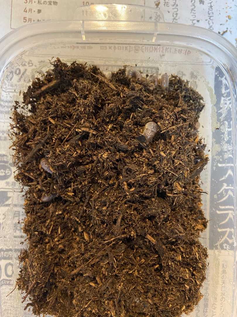 結局里親探しの幼虫さんは 33匹に……🙄 でも今回は貰い手探しに一苦労しそうな予感 そこで…… ダメもとでぱやぴの幼稚園の先生に 連絡帳で里親探しについて書いてみたら…… なんとぱやぴのクラスで3匹飼ってくれるって🥺 ということで 残30匹🐛✨ いやはや3匹でも助かりましたぁ💦 ありがとう先生andクラスメイツ😍 早速翌日3匹入りタッパを持っていこうとしたら 「カブトムシの赤ちゃんはぱやぴが持ってくね!!」 と何やら若干張り切っているぱやぴ笑 他の荷物はもちろん母ですが笑 出迎えの担任の先生を見つけるなり 「先生ー!!カブトムシの赤ちゃん!!」 と駆け出していき、母を振り返ることなく園に消えてった🙄笑 こういうのってこどもにとって嬉しい経験なんだぁー😄と初めて知ったのでした。 あわよくばおうちに持って帰りたい!! ってコが続出してくれたりぃ…… 他クラスも飼いたい!! って言ってくれへんかなぁー……🙄🙄🙄 どうせなら喜んでくれるこどもたちにあげたいなぁと思うからもうすこし里親探し続けようかな。 ジモティとかで譲ります って出してみてもいいなぁと思うんだが。 そんなときって郵送?? 複数人に住所知らせるんも嫌やしなぁ😮💨 とりあえずもっかりFBに載せてみましょう笑 光が反射してあんまりうまく写らないんだが エイト兄と思わしきこの子を眺めていたら なんやぁ?🐛 といっているのか赤いお顔をグイッとこちらに向けてきました。 いよいよかわいさより恐怖が増してきそうなサイズになってきましたなぁ😅 もう立派に3令幼虫やなって感じ。 エイト以外は2令ぽいけどなぁ。 最近コバエがめっちゃ気になるようになってきた😓 明日コバエホイホイ買ってこよ…… そらあの環境はコバエにだって望ましいわな…… でもダメーーー!!🙅♀️ 明日ペアレンツ用の栄養価高いゼリーと 幼虫たちの昆虫ウォータースプレー買ってこなあかんなぁー。