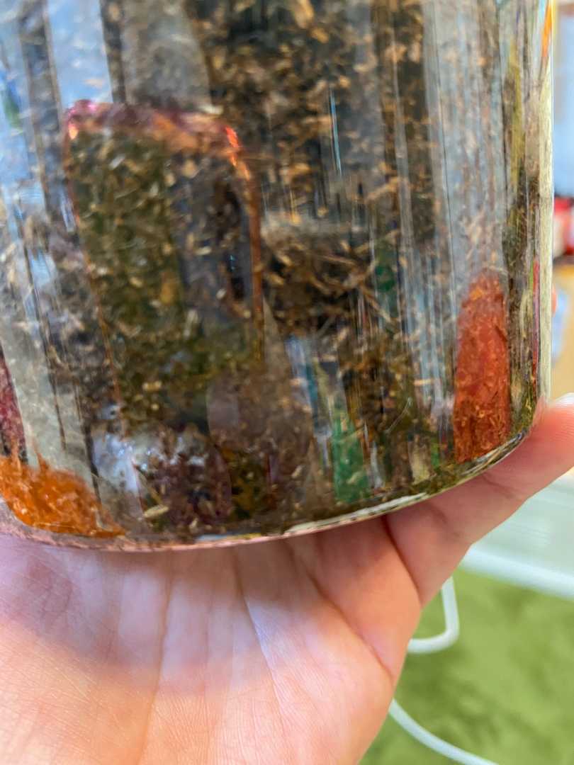10/18にやっと一時避難した幼虫たちの お部屋を整えた。 で、前回再発酵がかかったクヌギマットも 発酵が十分済んだだろうくらい放置したので 腐葉土3;クヌギ2くらいの割合で混ぜて使用…… したらさ、クヌギマットバケツに入れてたんだけど 底のほうに密かに生き延びた3期生発見🤣 傷つけずに発掘できて何よりだったんだけど笑 でも、10匹いたであろう3期生たちは5匹に 自然淘汰されていた。 自然界での生き残りの難しさも想像できる…… だからママカブトは亡くなるまで 必死で生み続けたんだなぁ…… って思った。 そして、2期生も土交換し、1期生も表面に 💩が見えてる子たちは交換してみた。 No.11にて軍手越しには幼虫たちを触れるようになったわたし。 成長しました🤣 もうオスのVマークも見えるころだなぁと 確認してみたんだけど、 1期生のエイト兄さん以外はわからん! ほぼメスに見えた笑 ま、蛹になってからのお楽しみってことにしよ笑 二期生もだけど、エイト兄さん他3匹の1期生の おうちはもう💩まみれ!! 半分リサイクルできることもなく総とっかえです 変えた翌日……エイト兄さんの食欲が半端なく、 入れた土の1/3食していた…… ごめんよ。飢えていたのだね💦 まぁこれで一安心かなと思っていたら 本日昨日水蒸気がついてる……あやしい…… と思っていた2期生2箱の子たちが上に上がってきてた😅 怖いのでさっそく蓋をあけて換気していたら 無事潜っていきました🤣 土さ、軽く握って固まるくらいの水分って書いてるけど、 実際はそれじゃ水分多い!! 軽く握って握った形がつかずほろほろくらいの 状態が幼虫にとってはベストということが ようやくわかりだした🧐 学習学習!!