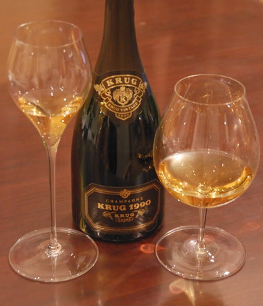 ちょっとした記念日である大晦日は、毎年恒例となってる1990年のワインで年越です。一昨年の大晦日は90年が開けられなかったので、今回は贅沢に行くことにしました。開けたのはコレ↓Krug Vintage 1990インポーターはヴーヴ・クリコ・ジャパンリリース時に買ってからずっとセラーで寝かせておいた1本ですが、これが素晴らしい1本でした。色合いは美しい黄金色でグラスを伝わる長い足はまるで金の滴のよう。蜂蜜、アップルバター、ブリオッシュに柑橘系のフルーツ等々、若さと熟成感が混ざり合った香がグラスから溢れ出てきます。泡は元気ながら細やかで、蜂蜜レモンやアプリコットのような果実味と甘味、それを支えるしっかりとした酸とミネラル、長いアフターと非の打ち所が無い味わいはまさに甘露。グラスもロブマイヤーのシャンパーニュとタイプIIIの両方で表情の違いを楽しみましたが、前者は綺麗な酸から来るアタックが、後者は甘味やボリューム感の有る長いアフターが印象的でした。やっぱり熟成したクリュッグは良いですねぇ。最近は殆どアルコールを口にしなくなった嫁さんも、流石にこれは気に入ったのかしっかりグラスを空けていましたし、私も久しぶりに感動できるシャンパーニュに出会うことができました。今でも十分飲み頃ですが、まだまだ熟成しそうなので残り一本は大事に取っておこうと思います。