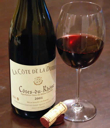 松澤屋さんの6本¥6,000セットに入っていた1本で、今回初めて試す生産者。松澤屋さんのコメントでは、ボーカステルのペラン家からアドバイスと指示を受けながら剪定栽培を行い、収穫醸造以降については完全にペラン家が担当とのこと。当然インポーターは松澤屋です。Cotes du Rhone 2004 Domaine la Durbane (松澤屋)抜栓最初は厩臭的な臭みが目立ち、その後に熟したプラムやブルーベリーの香が続く。やや軽めの味の割にタニックで、甘味に対して獣的なニュアンスが強く、アフターには還元的な臭みや雑味、苦みが目立つ。初日は酸の弱さから野暮ったい印象が強く、正直言って飲み辛い味わいだったが、二日目になってからは気になった厩臭や雑味も弱まり、ヨーグルトのような乳酸系やベリーの香、甘く凝縮した果実味が表に出て来て美味しく飲めるようになった。今風の洗練された味では無く、昔ながらの所謂「農産物」的な造りと言った印象。今の時点では好みが分かれそうだが、飲み頃に当たれば化けるかもしれないので、もう少し寝かせた方が良いでしょう。今飲むのなら抜栓後二日目以降がお薦めです。