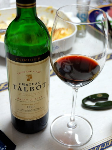 年明け早々、仕事や新年会で多忙な毎日が続いてしまい平日に更新する時間が取れません。正月に実家で飲んだワインの感想を簡単に。Meursault Perrieres 2002 Domaine Dancer Vincent写真は取り忘れ。インポーターは松澤屋。色合いは薄めのレモンイエローで、蜂蜜、白い花、柑橘系の香。味わいは2002年のペリエールにしてはミネラル感が弱くぽってりとした印象。酸はしっかりしているが、ミネラル感よりも果実味の厚さと甘味が目立つので、ペリエールと言うよりもシャルムのようなリッチで厚みのあるタイプに近い。ヴァンサン・ダンセと言うともう少しシャープなワインを作る印象が強かったし、期待したペリエールらしいミネラル感には少し欠けていたが、ワイン単体としてはムルソーらしい美味いワインでした。Chateau Talbot 1990色合いはオレンジがかった濃いめのルビー色で、カシスやシダー、焼いた肉や焦がしたカラメル等、熟成したボルドーの魅力一杯の香。味わいはタンニンが完全に溶けてとても滑らか。ねっとりするようなグリセリンや、ドライフルーツのような凝縮した果実の甘味が有りながら、熟成感もしっかり有ってアフターも長い。丁度今が飲み頃のピークと言った感じで家族の大絶賛、正月に相応しい美味い一本でした。ボルドーも五大シャトーはとんでもない値段になっているが、中堅クラスでも飲み頃に当たれば十分に満足できる事を再確認。今でもブルゴーニュの有名生産者の村名+α程の価格で手に入るし、飲み頃のブルゴーニュが減ってきているので、もう少しボルドーのストックを増やすのも有りかな、とも思ったりします。Diebolt-Vallois Brut Rose NVデザートの苺と共に飲んだのですが、これが見事にマッチ。香は目をつぶると本物と区別が付かないぐらいでまさに苺。飲んでみると香とは裏腹に残糖感が無くドライだが、グリセリンから来る甘さとフレッシュな酸のバランスが取れて香味共にとても華やか。まだ泡も強くアフターに苦みが残り纏まりに欠ける部分も有るが、値段を考えれば十二分に美味いロゼ・シャンパーニュでした。もう少し寝かせて纏まりが出てくればもっと良くなるでしょう。追加購入決定です。