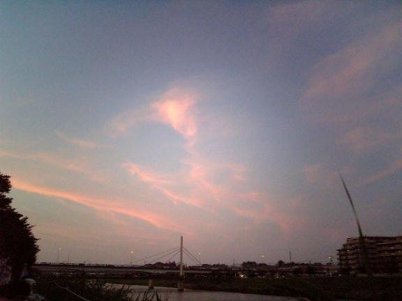 暑い一日でした川辺には涼しい初秋の風がやさしく吹いていました夕焼けも昼間の暑さを残して、うっすらと染まっています 日が暮れてきました何となく寂しい一瞬です すっかり日が暮れると秋の月が浮かんできましたもう。。。当たりは真っ暗始まりました この夏最後の花火大会です毎年川辺で行われますとっても涼しくてゆったりと見れます(人混みの方は行かないからかしら)この花火大会が終わると秋が来たといつも思いますちょっぴり酔った頬に川風は心地よいですまた来年ですね沢山の思い出のある八千代の川辺。。。。。