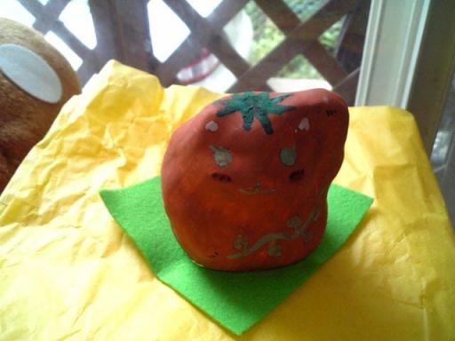 可愛いでしょうブログでお友達のなった miyumuyu さんのお嬢さんが作って送ってくれました張り子にイタリアと沖縄の赤土を膠でといて塗ったそうです。とっても素敵な色ですデザインはとまとにゃんこのとまとをイメージして作って下さったそうです。小さな姫が一生懸命作っている姿が目に浮かびます本当にありがとうございます10日からかなり胃が痛んで何も喉を通らず伏せておりました病院で点滴を打って何とか生きてますこんな時に送られてきた可愛いプレゼント心がほんわか温まりました可愛いにゃー