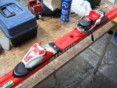 ビンディングそのものは、マーカーMRR1500の新品を渡してお願いしていましたが、何といってもATOMICのスキー板は専用ビンディングシステムなので、ビンディングの装着してあるネジ穴位置が違うため、加工に結構手間取ったらしいです。
