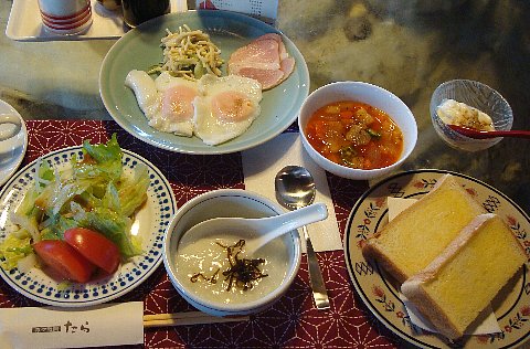 朝食は,和食の日と洋食の日が交互にあるようです。この日は洋朝食。コーヒーはセルフサービスです。ゆっくり朝食を食べられる しあわせ。
