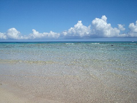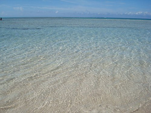 1時間弱は,百合ヶ浜にいたでしょうか。グラスボートのお迎えの時間になりまたそれに乗って海岸に帰ります。来た時には大きかった百合ヶ浜も帰るころにはものすごく小さくなっていました。少々ぬれますがこの「百合ヶ浜ツアー」はお勧めです。青い海の中にぽっかりと浮かぶ白い砂浜。潮の関係で出現したり消えたりする砂浜。その浜に行くことができて大満足のツアーでした。