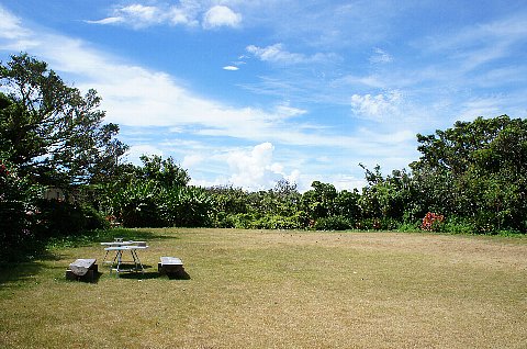 夕食の後部屋に戻る前に夜風が涼しいので写真のベンチに座っていました。周りは真っ暗で星がとてもよく見えました。あまりにも星がきれいに見えるのでとうとうベンチに寝っ転がってしまいました。周りに明かりがなく真っ暗で空には星がいっぱい。天の川もくっきり白く見えました。夜風も湿気がなくて涼しいのです。本当に気持ちのいい時間でした。それにラッキーなことに流れ星も見ることができました。しあわせな時間でした。