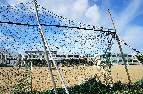 次にやってきたのは与論中学校。映画「めがね」では高校として登場していました。↓「与論島ガイドマップ」の与論中学校の場所にもめがねマークがついてます。