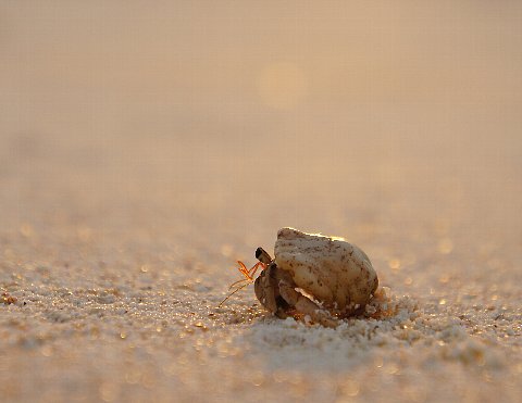 なんだかカサコソ音がすると思ったらヤドカリがいました。夕陽を浴びるヤドカリ。今回の旅で一番好きな写真です。