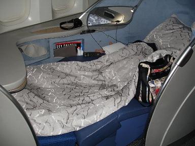 CAさんが羽毛布団を持ってきてくれました。