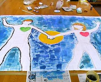 こんにちは。shihomiです。だいぶ寒くなってきました。家では、冬の主役。おこたつも登場です。さて、今日は「出会いと別れ」でお送りします。先日、一緒に頑張ってきた友達が、突然、北海道に帰ることになりました。(彼女は、北海道出身)出会いがあれば、別れがあるのは当然なのですが、何の前触れも無くその時がくると、びっくりです。彼女とは、今年、スペシャルオリンピックスのアートフラッグを作ったり、(女の人、実は私のかたどりです。彼女がとってくれました。)いろんなところに食事にでかけたり。たくさん話もして。楽しい時間をすごしました。そんな彼女のために、先日仲間、5人が集まって送別会を開きました。仲間が欠けることは寂しい事だけれど、今の時代携帯もパソコンも普及。長野から北海道へも行かれる時代。だから、今度は、わたしが来年は北海道へぶらりひとりたび~なんて、いいかなって、またまたポジティブ思考です。行くとしたら、ジンギスカン食べ放題の、ビール工場?それとも、旭山動物園。いやいや、北海道といえばラーメンでしょ。なんだか、夢が膨らむshihomiです。そういえば、北海道のお土産、「白い恋人たち」沖縄には、「黒い恋人たち」ってあるって本当?教えて、めーぐさん!私、からかわれてるのかな?