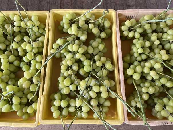 シャインマスカットもだいぶ収穫してあと2回くらいで終わりです!木曜日に収穫したときに袋を取ったのに切り忘れたみたいです鳥に食べられちゃったかと思いましたが、セーフでしたぶどう狩りもあと少しなので頑張ります雄宝葡萄も全部収穫して葡萄の木も軽くなったようですでも、いよいよ寂しい感じになってきましたよ!昨日は雨がちょっと当たりましたが、ずっと曇っていました!最高気温は27.3℃、最低気温は21.3℃と涼しかったです!今日も雲が出ていますが33℃予報です!なぜか樹里ちゃんが立ち止まって・・・小春ちゃんは気が付いていないふりをしてました柿を見に行ったらもうちょっとになっていましたよにほんブログ村