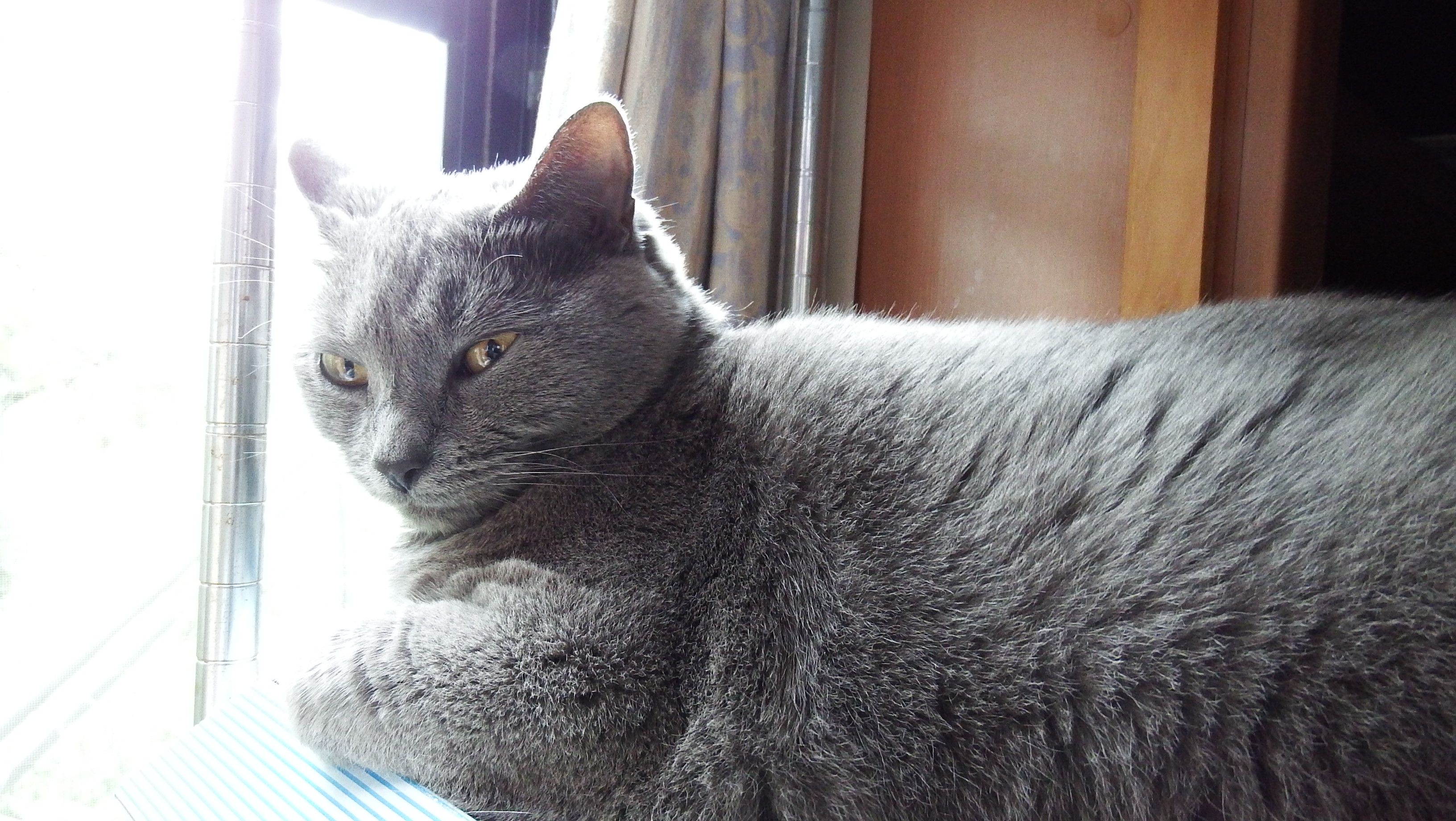 今朝の小春ちゃんは、眩しそうに外を見ていました!