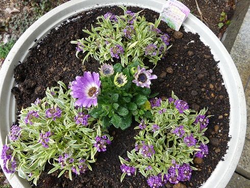 春のお花も無いと寂しいので アリッサムと オステオスペルマム の寄せ植えを作ってみました ​​​​