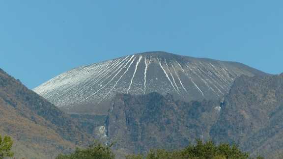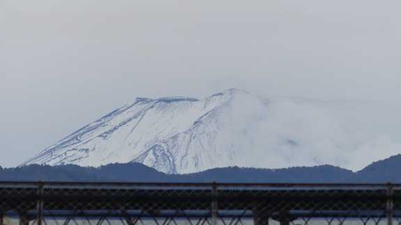 噴火の時の溝に雪が積もって面白い感じになっていましたよ!