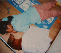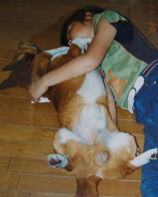今から4年前。がっくんが我が家に来て、荷物置き場だった部屋の半分をサークルで仕切り「がっくんエリア」にしてしまったダンナ。めぐねぇが「がっくんエリア」に行き、賑やかだったのに物音がしなくなった。様子を見に行くと↓ ↓ ↓こんな感じでした。 可笑しくって、可愛くって、嬉しくって、愛しくって、笑いをこらえ、足音を立てずに、カメラを取ってきてそ~っと、そぉ~~っと撮影。 この頃はフィルムカメラでした。ネガをCDに焼きなおしていないので、プリントしたものをデジカメで撮りました。だから画質はババチイです。それからコレは、がっくんが一番最初に我が家にやってきた日に撮影。玄関は彼を迎えるために全て片付け、ダンボールでガードしております。でもそのダンボールもわずか数日で取り払い「がっくんエリア」開設となりました。